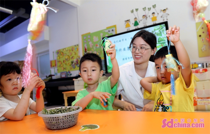 中国山东网-感知山东6月21日讯(记者 江学俊 通讯员 王其超 )在端午节即将到来之际,6月20日,淄博市中西医结合医院组织医护人员来到淄博柳泉幼儿园,开展“品端午、识中药、包香囊”传统文化宣讲活动,让中医药走进校园,使中华优秀传统文化浸润孩子们的心灵。